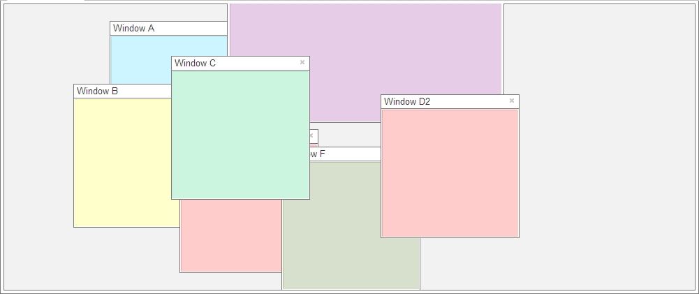 A useful addition both for “flat” frameworks that don’t allow overlap, and for 3D-enabled windows, is a way to organize the panels in a more creative and useful way than just a cascade.